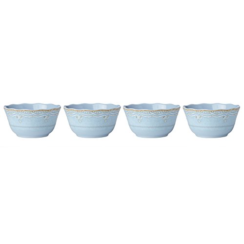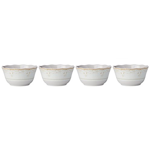 Add elegance to your outdoor entertaining. The melamine collection has the fanciful beading of French Perla complete with scalloped rims and tea stained accents.