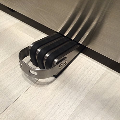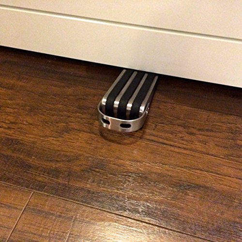 An Effective, Elegant Solution Tired of pushing the door open? Our SleekStopper door stop holds the door open with ease and style so you can move freely from one room to the next. It's made of brushed stainless steel - a stylish material that fits into any environment. The black rubber treads provide an attractive accent to the stainless steel, giving it a modern decorative look you won't find with other door stops. The non-slip treads fit the metal body perfectly, providing excellent grip while protecting your floor from scratches.