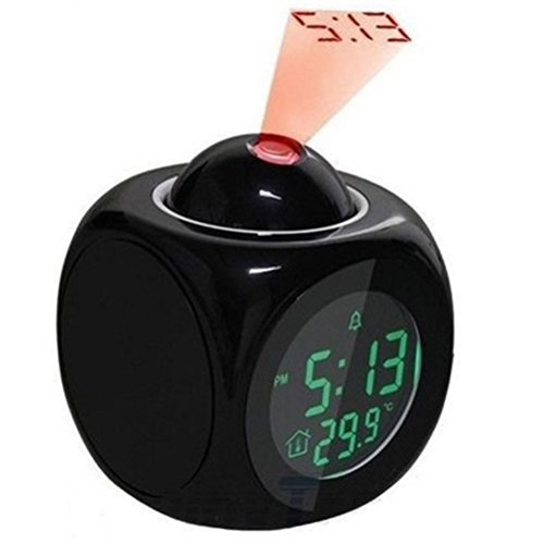 Product description Colour:Black Description: This LED projection clock displays the current time and temperature and even speaks it aloud! It can also project the accurate time to your ceiling or wall. You could put it anywhere - study, bed room, desk. The clock is fully adjustable so you can customize it to your needs