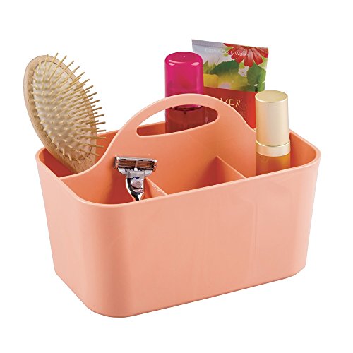 mDesign Bathroom Shower Caddy Tote for Shampoo, Conditioner, Soap - Set of 2, Mint/Coral