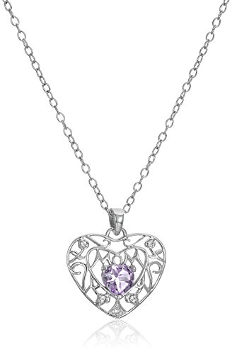 Sterling Silver Amethyst Filigree Mom Heart with White Topaz Accents Pendant Necklace