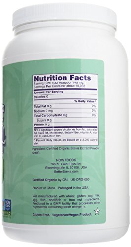NOW Foods Better Stevia Certified Organic Extract Powder 1 lb (454 grams) Pwdr