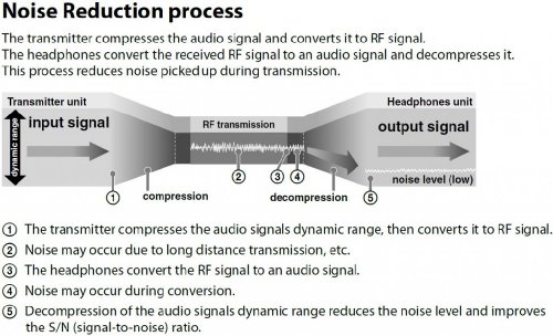 -. Feature : Amazing Wireless Sound - Enjoy ultimate sound with the 40mm drive units that deliver rich deep bass, powerful ferrite magnets that give you a high fidelity sound and a wide frequency response of 10 - 22000Hz delivers P.R.Istine audio, wirelessly. Noise reduction process works that the transmitter compresses the audio signal and converts it to RF signal. The headphones convert received RF signal to an audio signal and decompresses it, reducing noise picked up during transmission. / Radio Frequency transmission works by sending out radio frequency signals from the transmitter (base) to the wireless headphones. Radio frequency signals allow high fidelity sound reproduction and have an expanded reception range (up to 150ft) that does not require keeping the headphones within line of sight of the transmission, thus enabling listening pleasure even through walls. Three individual frequency channels with auto tuning gets you the clearest reception with no interference at all. / The supplied rechargeable nickel-metal hydride battery lasts approximately 25 hours on a full charge and recharges automatically when you place the headphones on the base station and fully recharges an empty battery via fast recharge electromagnetic induction in just three and a half hours. Also has the option of using standard AA alkaline batteries. (Not supplied) / Comfort & Convenience - Durable and Strong, yet so lightweight you can wear them for hours on end, with a easy-adjusting, wide, soft padded headband, king-size earpads that completely cover the ear. Power switch and Volume Control is mounted on the headphones with an ON/OFF LED Indicator. Also the Mute feature operates even when RF signal is weak. Let your mind wander as your feet take you where they will with wireless headphones that fill your world with quality audio. / Included Converter, Converts the digital audio signals into analog audio signals, thus allowing these superior headphones to be used with your television. Inputs include Optical Toslink as your TV's output and outputs are analog RCA R/L or AUX 3.5mm mini output jack, so you can plug in the headphones any way you choose. Latest technology provides electromagnetic noise-free transmission. Includes 6 foot Fiber Optic, Extra Durable Heavy Duty Toslink Optical Cable with Gold Plated Connector Tips.