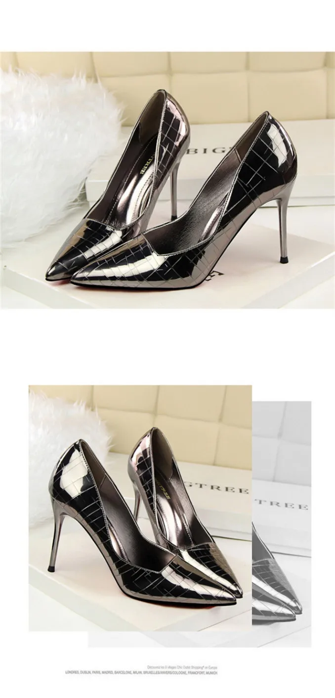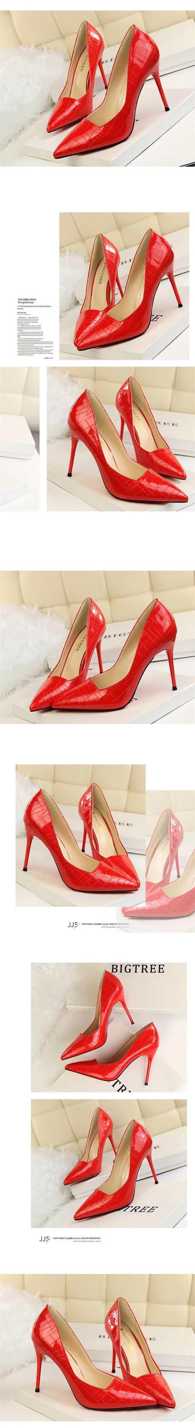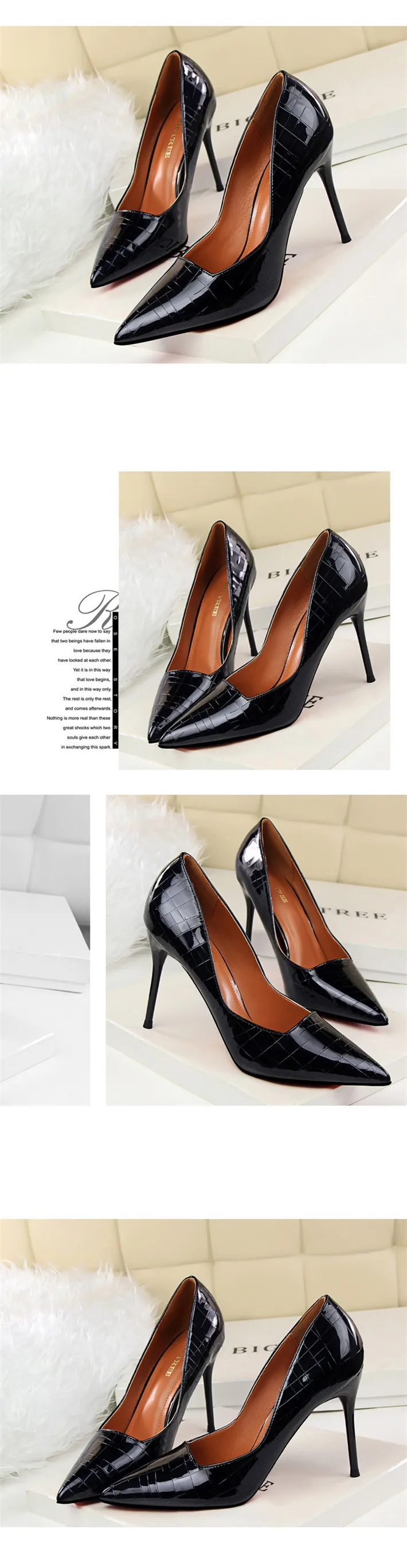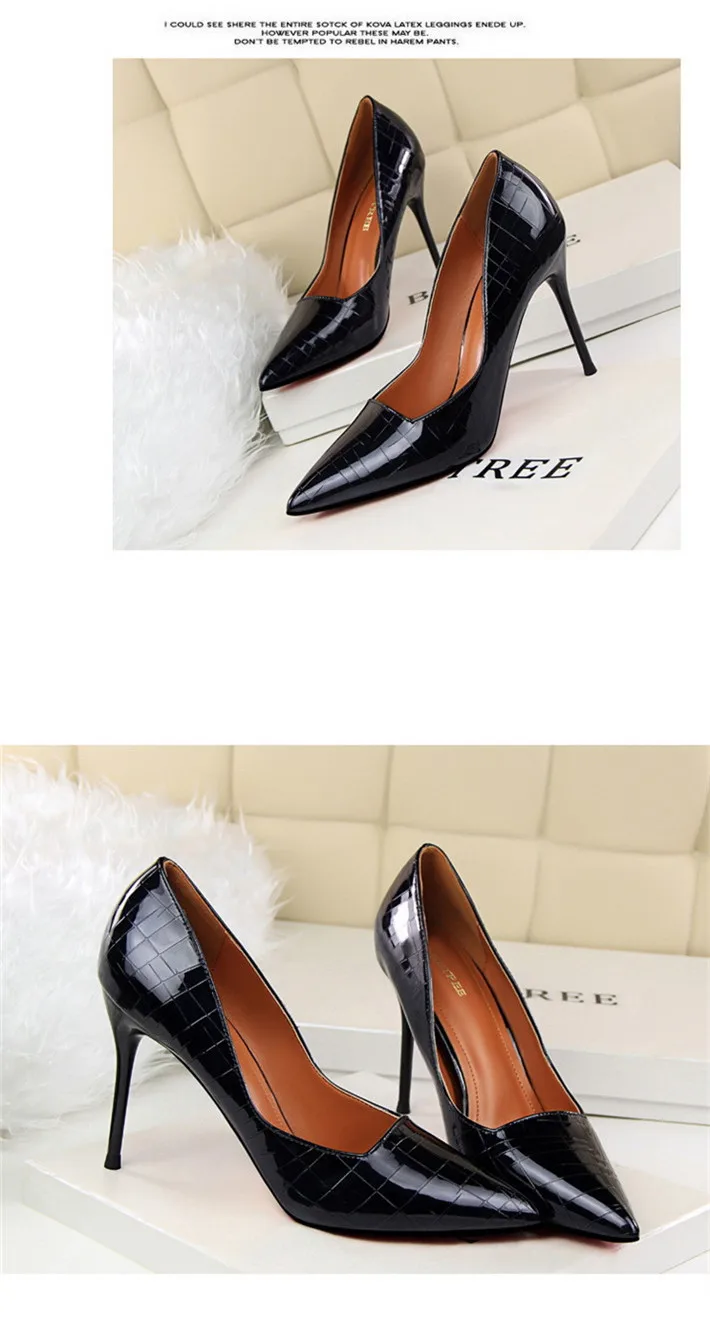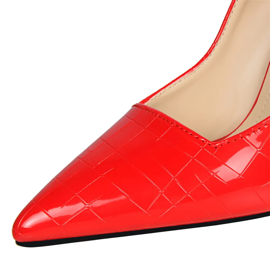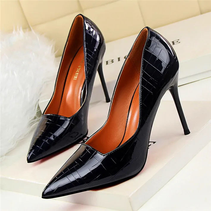 Item:Retro Stone Pattern Fashion Patent Leather Pointed Toe Shallow Shoes
