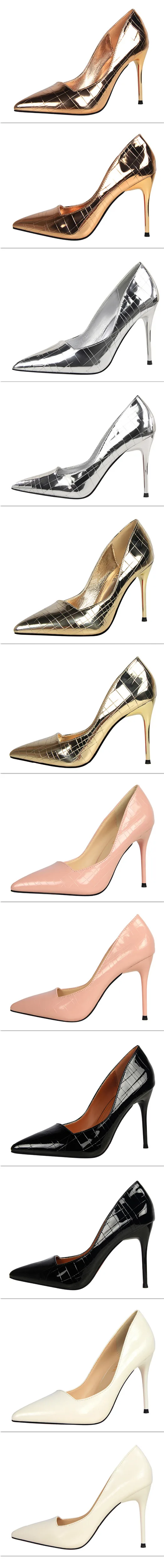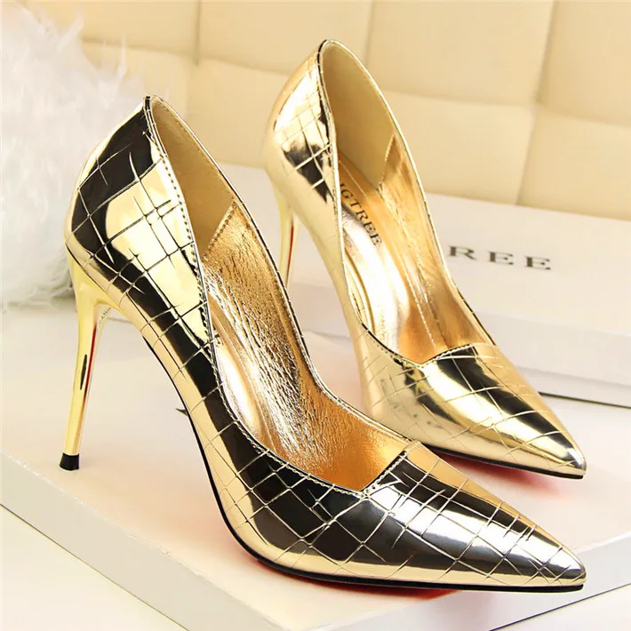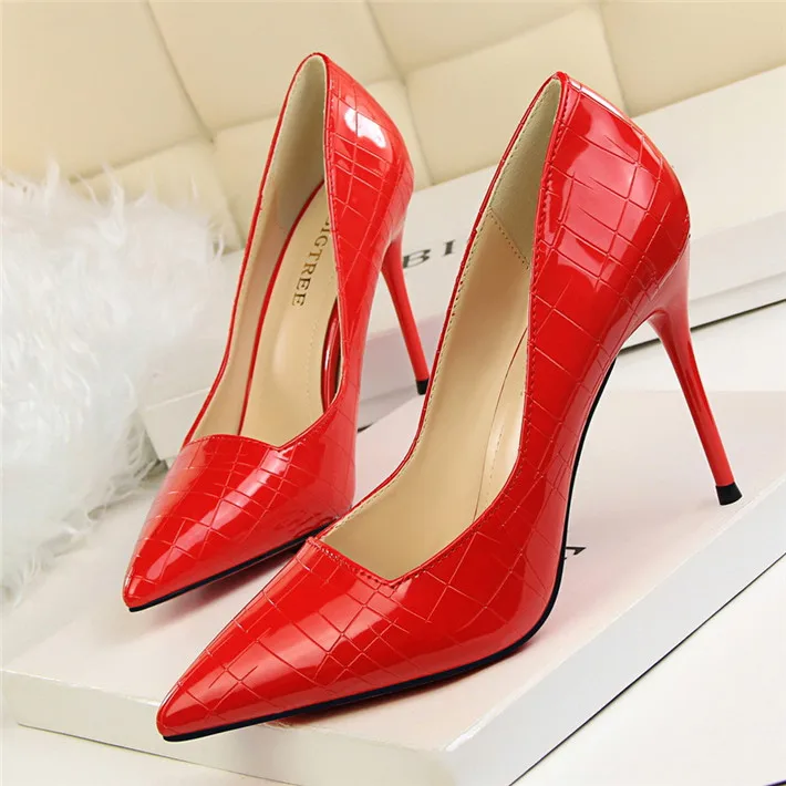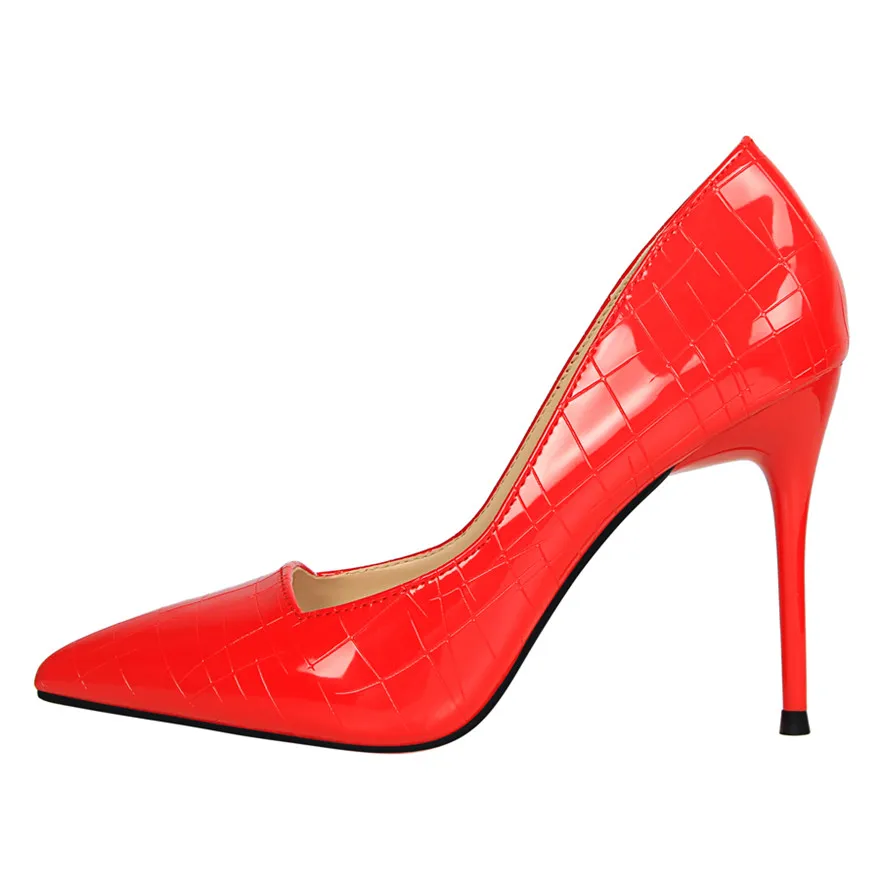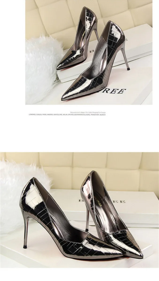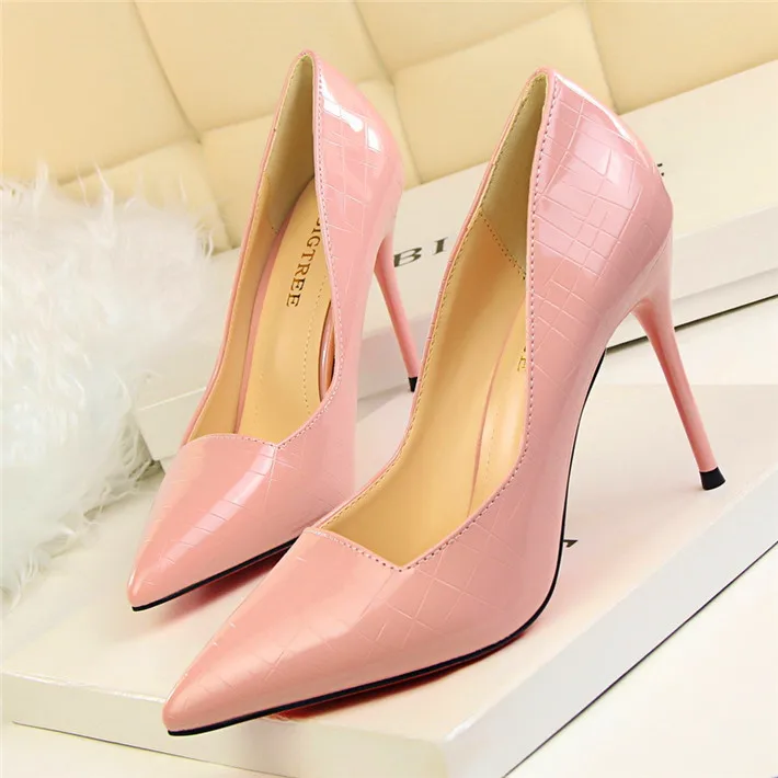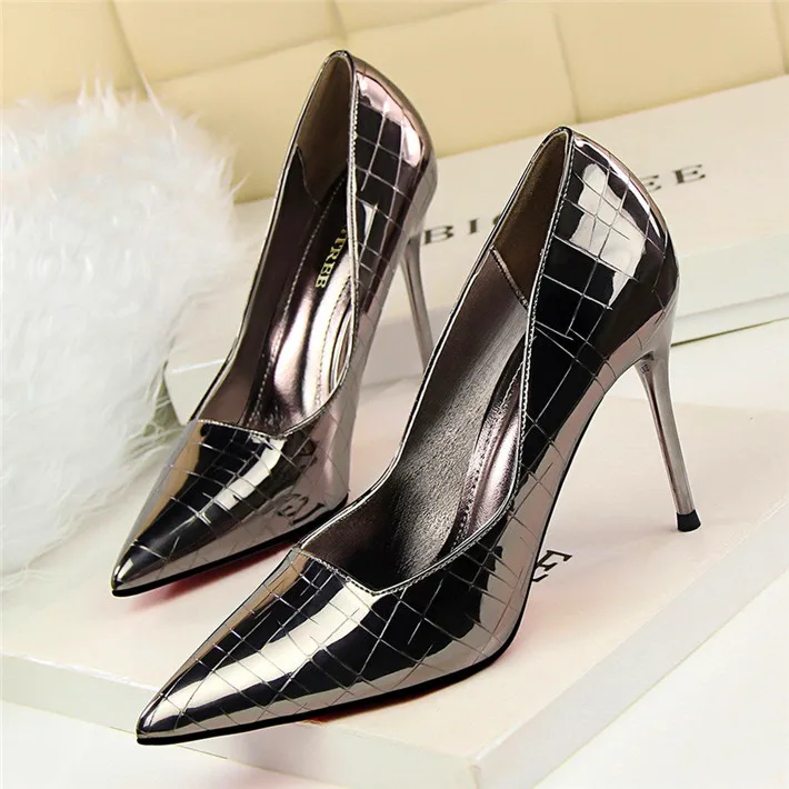 Item:Retro Stone Pattern Fashion Patent Leather Pointed Toe Shallow Shoes