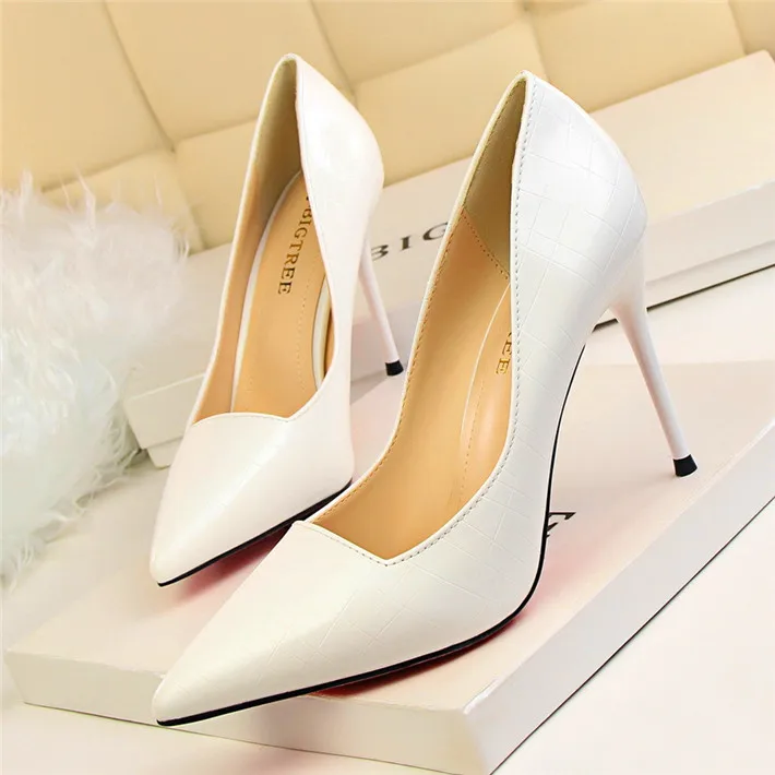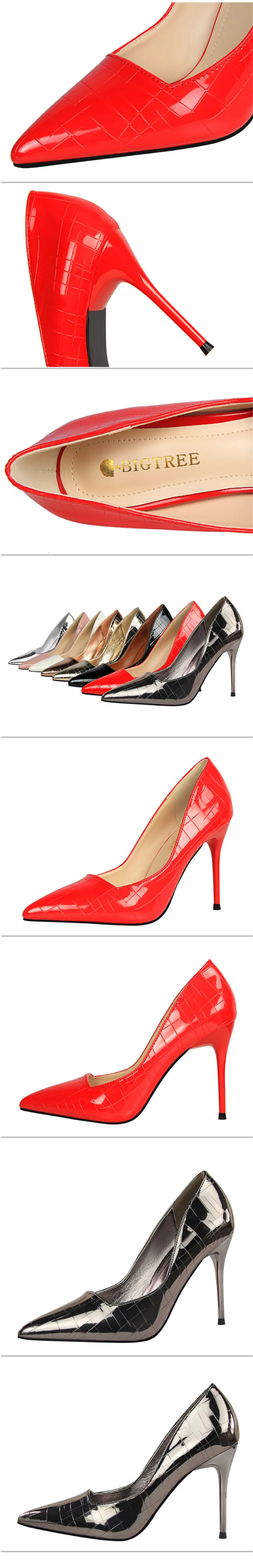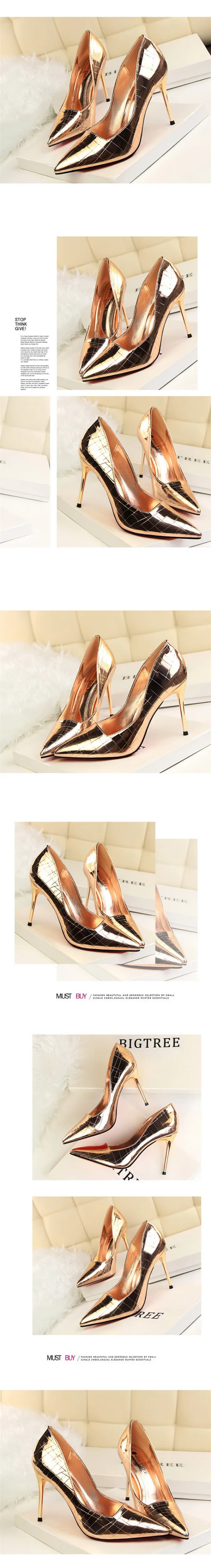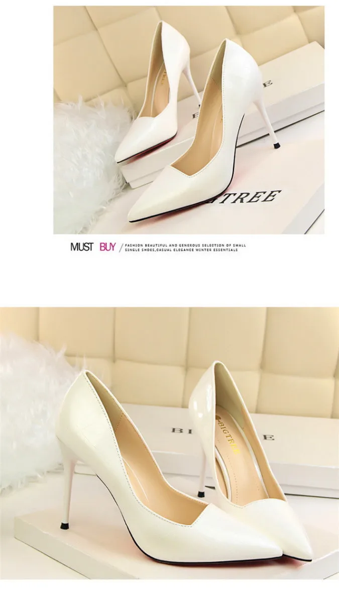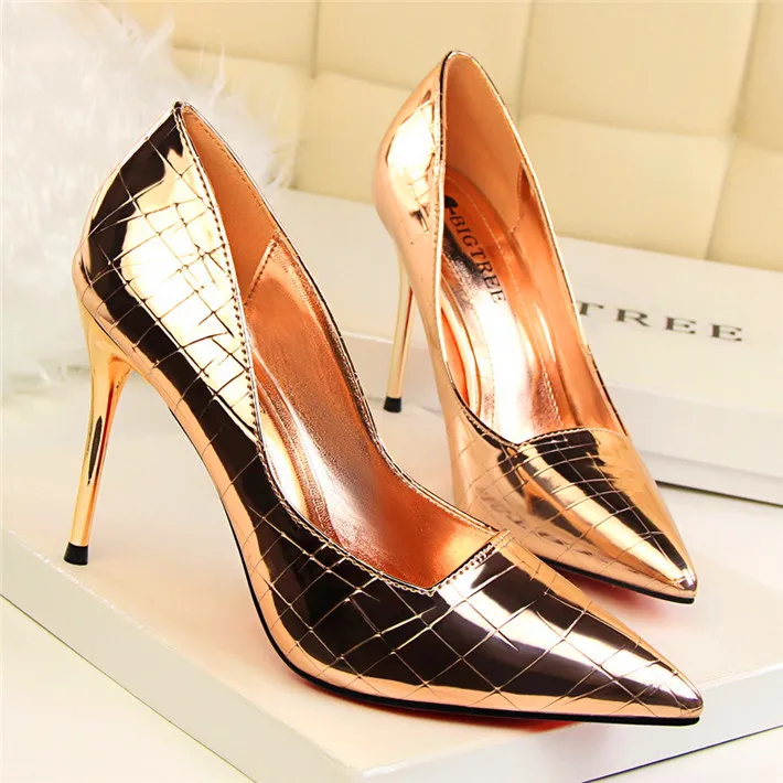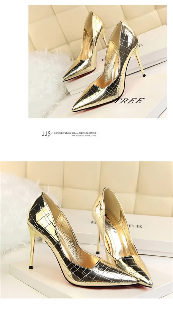 Item:Retro Stone Pattern Fashion Patent Leather Pointed Toe Shallow Shoes