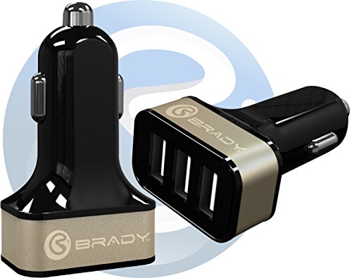 -. Feature : Performance: Are you still charging your new phones on an old car charger? Do you know you could speed up the charge rate 2x or even 4x in some instances with just an updated car charger? Count how frequently our customers find their car charger Faster while simultaneously charging up to 3 of the most power hungry phones and tablets. / Compatibility: With the latest technology, the Brady car charger determines the optimum speed to charge your new phone or tablet so you know it will be safely charged as fast as it can be charged. Supports standard USB chargeable devices: Apple iPhone, iPad, iPod, Samsung, GoPro, Nintendo 3DS/DSi/XL, USB 2.0 and 3.0 compatible devices. Fits 12V and 24V charge adapters. / Safety/Reliability: The Brady car charger goes above and beyond the minimum requirements to deliver state-of-the-art safety for your travels. Self-monitoring ends concerns for your phone, your car and yourself from start to finish of every trip. Stands up to falls from several feet, road vibration in your travels, power surges from your car, salt spray, crushing, pulling, yanking, and thousands of connections. / Quality: Brady's Friends understands quality and delivery of customer expectations everywhere you use Brady car chargers. Distinguished by state-of-the-art ISO 9001 manufacturing yielding performance in every device delivered. Pure copper connections ensure long life and full speed charging. Premium housing material continually resists scratches and wear leaving you with a product for life. / Service: Customer initiated rating-"Excellent proactive service." Our inside secret-We are so confident that you will experience "The Best Charging Experience... Ever," that our extra mile guarantee immediately refunds your purchase P.R.Ice. Then we go ahead and deliver a replacement Brady car charger-for free.