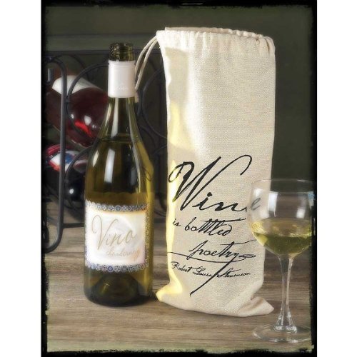 Jozie B Wine is Bottled Poetry Cream Canvas Drawstring Single Bottle Tote