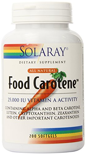 Solaray Food Carotene provides a minimum of 10,000 IU of Vitamin A activity in a unique, highly advanced formula containing 100% natural carotenoids found in food.