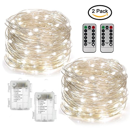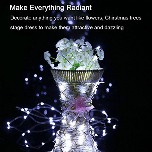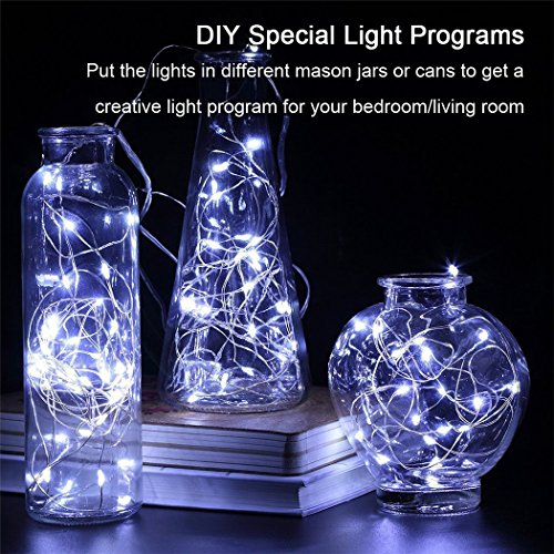 - ❤ ROMANTIC AND APPEALING TOUCH: This package includes 2 pack daylight white battery powered fairy lights and 2 remotes, each single 16.4 ft extra long moldable copper wire comes with 50pcs glowing micro Leds on and a single remote for controlling. The string light glows up with beautiful cool white light around, perfect for spicing-up your decor or setting the mood for wedding ceremony, Christmas, Thanks Giving Day, Halloween Parties, or making twinkling bonsai / plants arrangement.