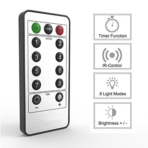 - ❤ 8 MODELS AND TIMING FUNCTION: With a smart remote in hand, you can wirelessly adjust the brightness of fairy LED light to fit various scene, which the 8 modes of lighting and flashing are: wave, sequential, Slo glo, chasing / flash, slow fade, twinkle / flash and steady on. Each one of them could offer you a vision of romantic. You can also easily turn on / off the lights, set them in timer to auto on and off each day, the fire lights will be 6 hours on and 18 hours off per single day.