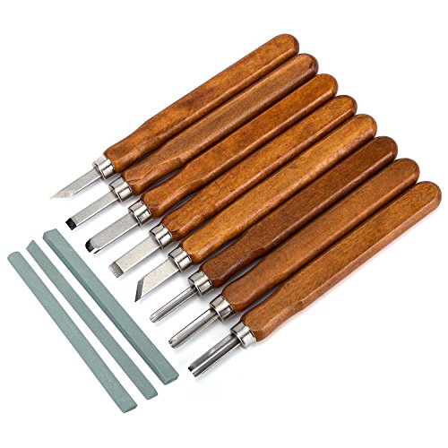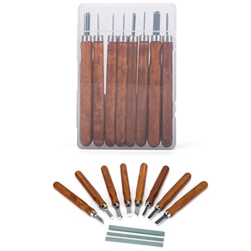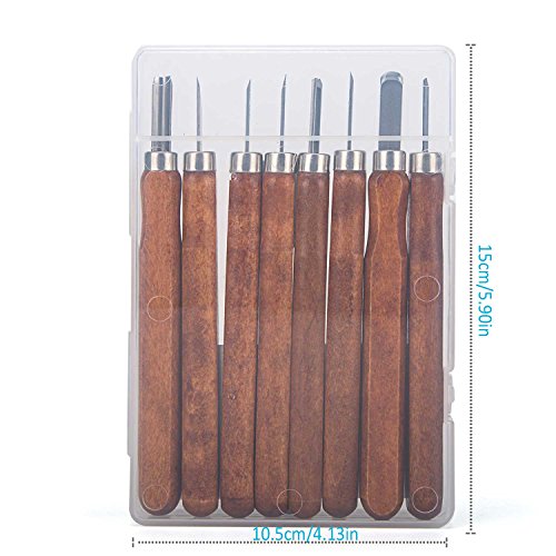 - Enough variety of the tips in different 8 sizes-deep gouge, medium gouge, shallow gouge, narrow straight chisel, wide straight chisel, rounded chisel, 4 angled knives / chisels, parting tool, pinpoint tool.Great for beginners whether it’s kids or adults.