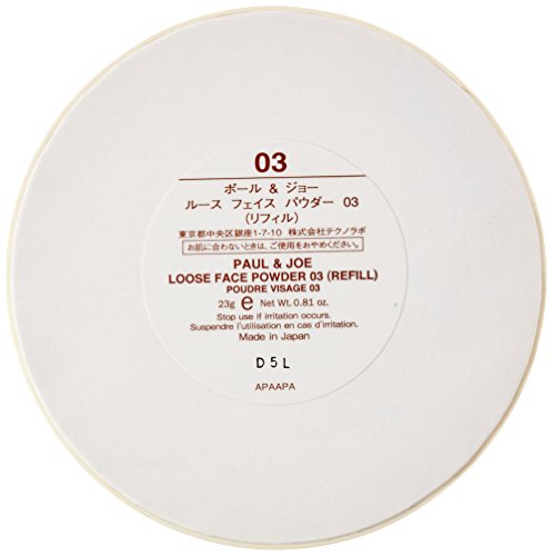 -. Binding : Health and Beauty -. Brand : PAUL & JOE -. Color : Buff -. EAN : 0885339536150 -. Feature : Paul & Joe Loose Face Powder (Refill) is a light and airy texture minimizes the appearance of fine lines, blemishes and other imperfections as it brightens your complexion / The application absorbs oil and illuminates every area it touches while jojoba, honeysuckle and orange flower extracts prevent inflammation and keep your skin silky soft with a dewy finish / Buff is ideal for medium to tan skin tones -. Label : Paul & Joe -. Manufacturer : Paul & Joe -. Model : APAAPA03 -. MPN : APAAPA03 -. PackageQuantity : 1 -. PartNumber : APAAPA03 -. ProductGroup : Beauty -. ProductTypeName : BEAUTY -. Publisher : Paul & Joe -. Size : .81 oz -. Studio : Paul & Joe -. Title : Paul & Joe Paul & Joe Loose Face Powder (Refill) - Buff - Buff, .81 oz -. UPC : 885339536150