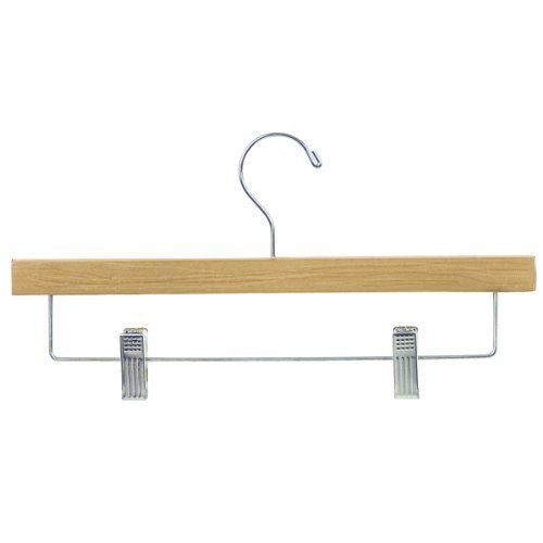 -. Feature : 14" Wood Pant Hanger with Chrome Hook and Clips / Buy Bulk and Save! / 25 pieces per carton / Same hanger used in Retail Stores throughout the world