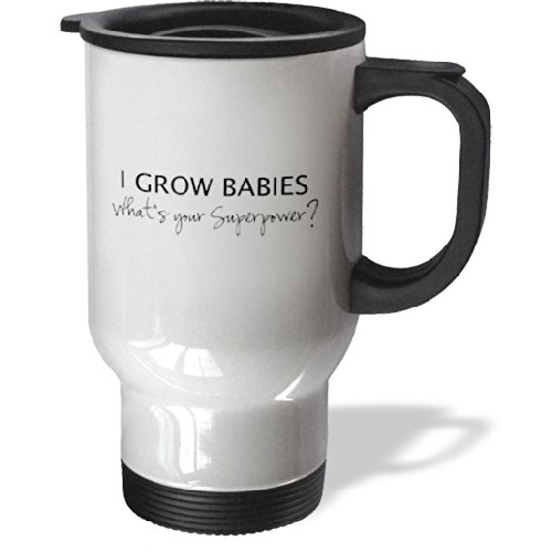 3dRose tm_184939_1 I Grow Babies Whats Your Superpower Pregnant Mom Pregnancy Humor Travel Mug, 14-Ounce, Stainless Steel