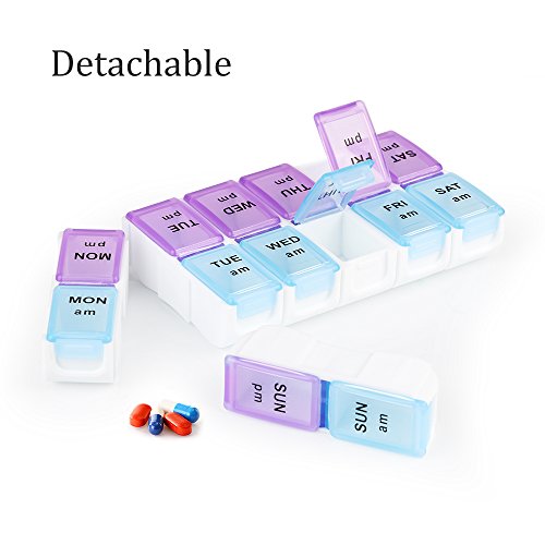 ▶MULTIPURPOSE: This pill organizer can be used as a 14 day or 7 day pill planner. And it can detached as a 1 day pill planner that you can easy to put in your pocket.