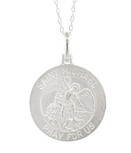 -. Title : Sterling Silver Saint Michael Medallion Pendant Necklace