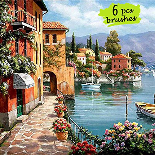 DIY Paint by Numbers Kit with 6pcs Brushes and Rolling Canvas, Oil Painting Kit for Adults, Kids Beginner - Seascape Resort 16"x20"