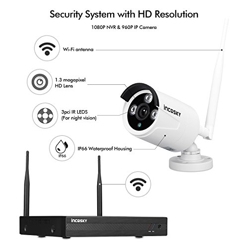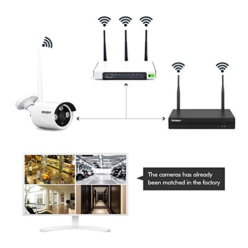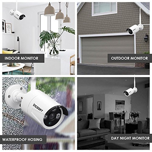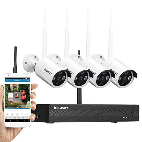 Wireless Security Camera System incoSKY WiFi DVR/NVR 720P 4CH HD Night Vision, Motion Alerts, IP66 Waterproof for Office, Home Surveillance, No Hard Drive, W2