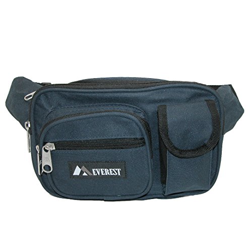 Studio : Everest Publisher : Everest Product Description This medium size pack features three zipper-compartments and a Velcro pocket. The waist pack is made of tough 600-Denier Polyester. This waist pack is ideal for carrying first aid supplies, medication, EpiPen and so much more. The adjustable waist straps fits up to 42 inches and measures 14 x 6.5 x 3 inches. 0