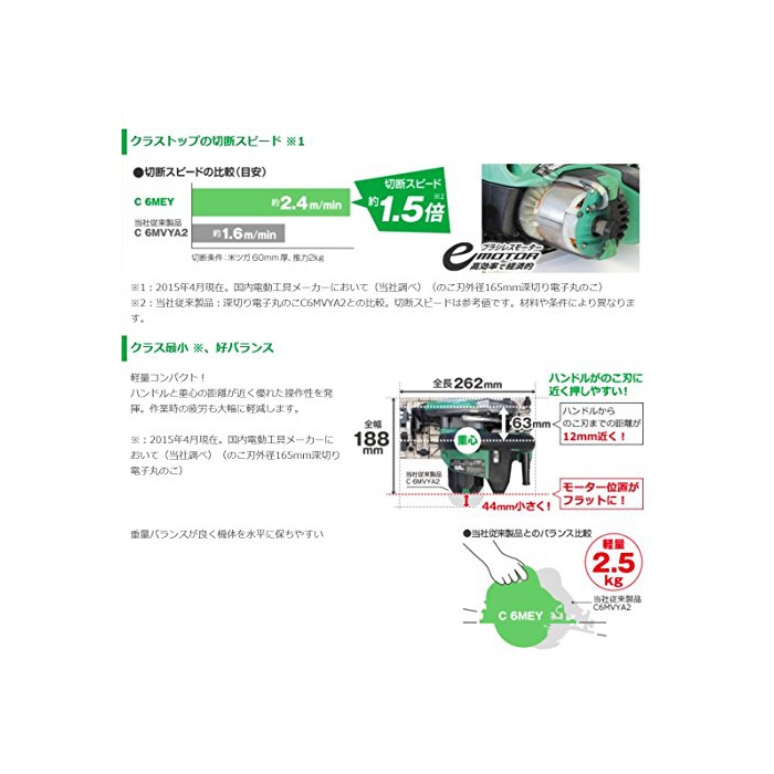원본상품명:日立工機 深切り電子丸のこ のこ刃165mm 逆5傾斜切機構 切み深さ調整機構 LEDライト