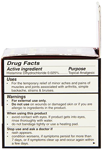 - Feature : No painful burning sensation / No odor and no greasy feeling behind / Uses histamine dihydrochloride, which increases blood flow to the treated area, relieving arthritis pain the way your body does naturally
