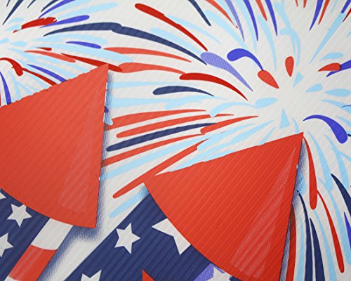 Patriotic 4th of July Uncle Sam Decoration Signs Multi Colored Assortment Red White And Blue Flag Design For Outdoor Lawn Patio and Garden Yard Stakes Includes 6 Cut-outs
