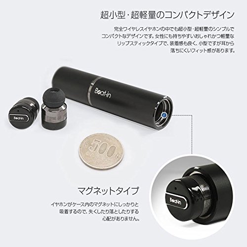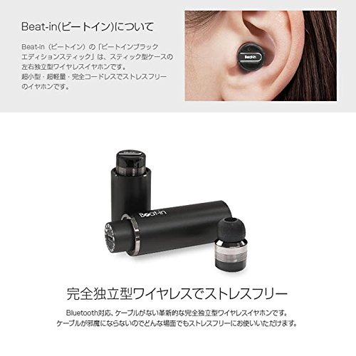 Beat-in(비트 인)의「비트 인 블랙 에디션 스틱」서는,스틱형 케이스의 좌우 독립형 wireless 이어폰입니다.초소형 초경량 완전 무선에 스트레스 프리의 이어폰입니다.