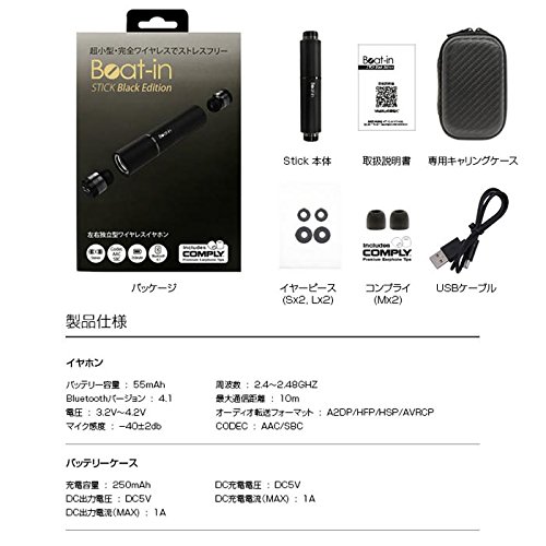 원본상품명: Bluetooth 4.1?? ワイヤレス イヤホン ビ?トイン スティック ブラック エディション 超小型 ?量 コンパクト 持ち運び 左右 完全?立型 スマホ イヤホン ? シンプル アイフォン7