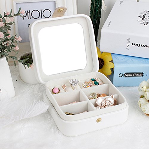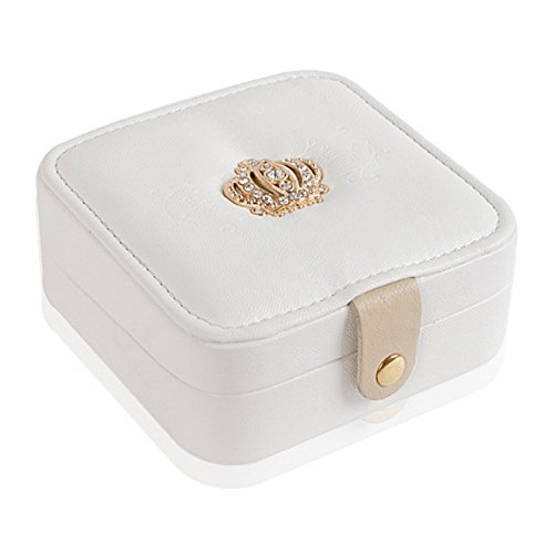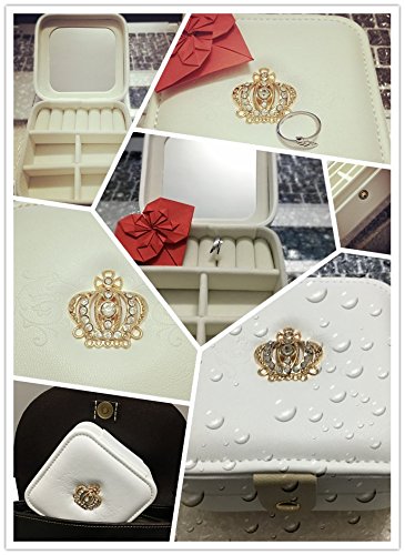 -. Title : Richapex Travel Jewelry Box Organizer with Crystal Crown Display Storage Case with Mirror,Cream White