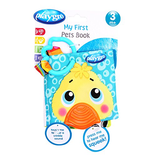 -. Binding : Baby Product -. Brand : Playgro -. Department : baby-boys -. EAN : 0885503898091 -. Feature : Has a strap with a plastic clip for easy attachment to a stroller, pram, or in the car Textured chewable tether on the front page; relieving baby's sore gums Crinkle sound pages; designed to encourage baby to practice grasping and fine motor skills / A squeaker feature on the front page has been included for little hands to discover, great for stimulating baby's audio development / Vibrant colors and patterns for visual stimulation-including high contrast stripes and bold P.R.Imary colors Gross motor skills can be practiced by turning pages, grabbing and swinging the book -. IsAdultProduct : 0 -. ItemPartNumber : 0182252 -. Label : Playgro -. Manufacturer : Playgro -. Model : 0182252 -. MPN : 0182252 -. NumberOfDiscs : 1 -. PackageQuantity : 1 -. PartNumber : 0182252 -. ProductGroup : Baby Product -. ProductTypeName : BABY_PRODUCT -. Publisher : Playgro -. ReleaseDate : 2015-01-20 -. Studio : Playgro -. Title : Playgro My First Pets Book for Baby -. UPC : 885503898091