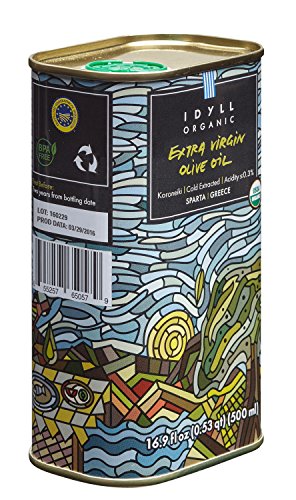 -. Binding : Grocery -. Brand : Idyll -. Feature : Koroneiki Monovarietal | Cold-extracted | Acidity < 3% / Smooth, fresh and grassy with a peppery finish / Made from olives handpicked in Sparta, Greece / Certified Protected Geographical Indication (PGI), an EU label for a product unique to its region / Certified Organic by TUV Austria -. IsAdultProduct : 0 -. Label : Idyll Inc. -. Manufacturer : Idyll Inc. -. NumberOfItems : 1 -. PackageQuantity : 1 -. ProductGroup : Grocery -. ProductTypeName : GROCERY -. Publisher : Idyll Inc. -. Studio : Idyll Inc. -. Title : NEW ! Idyll Organic Greek Extra Virgin Olive Oil