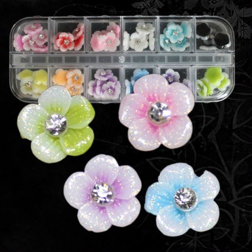 10mm 12 Colors 3D Acrylic Flowers with Glitter
