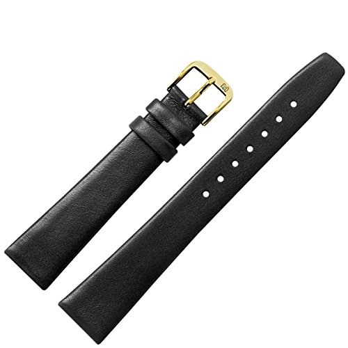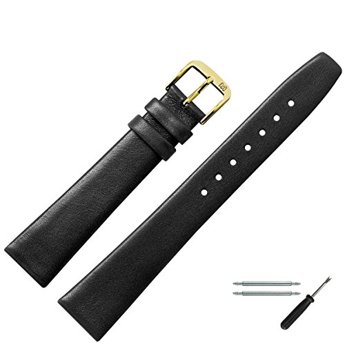 DESIGN - konventionelles Ersatzband aus Rindsleder fur Uhren in der Farbe Schwarz | Uhrenband mit verschmalernder Form des Bandes | Ersatzarmband mit glatter Oberflache und typischer Dornschliesse | wunderbar passend zu allen modernen und klassischen Uhren | geringe Farbabweichungen konnen aufgrund naturlicher Eigenschaften des Lederbandes oder wegen der Darstellung am Monitor auftreten