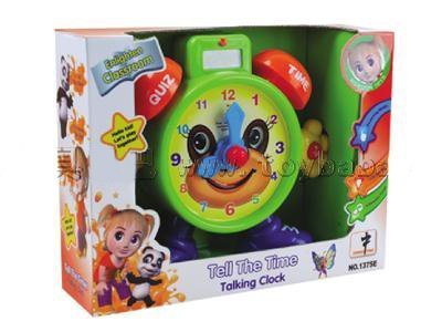 "Tell The Time" Cartoon Learning Clock 1. Learning mode - move the clock hands to a certain scale, then press the TIME button, the clock will tell the time with LCD display. Press the repeat button to hear it again. 2. Quiz mode - press the QUIZ button, the LCD display will show the time by random, move the clock hands to the correct scale as the time shown. You will hear it applaud if you do it correctly. If you are wrong, you will have 3 chances to get it correct before it tells you the right answer. Also plays music! Press the music key to play 6 different pleasant tunes! 3 x AA batteries required (not included). Colors may vary from picture shown. Ages 3 and up. - educational toy - educational clock - clock display - clock - clock toy - teach time to kids -Feature
