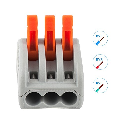 Wire Compact Connectors, MACTIS PCT-212 Lever-Nut Lever Conductor Compact Connector Terminal Block Wire Push Cable Connector (50 Pack, 3 Port)