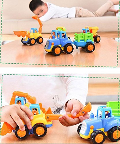 -. Feature : Any kid who loves trucks will love this sets. All trucks runs on push-and-go power.Suitable for children ages 18 months and up. / Set of 4 Play Vehicles for Toddlers, includes 1 dump truck, 1 cement mixer, 1 bulldozer, and 1 tractor with a detachable trailer / Construction Vehicles Toys Set, Made of high quality, Sturdy plastic / We believe that play is an integral and necessary part of a child's development and education. We are committed to developing fun, innovative, high quality products for children of all ages. / Just hold the truck, push it forward several times, then let go and watch it roll. The Toys are made of high quality, durable plastic and is the perfect addition to any child's construction site, whether it's in the playroom or the sandbox.