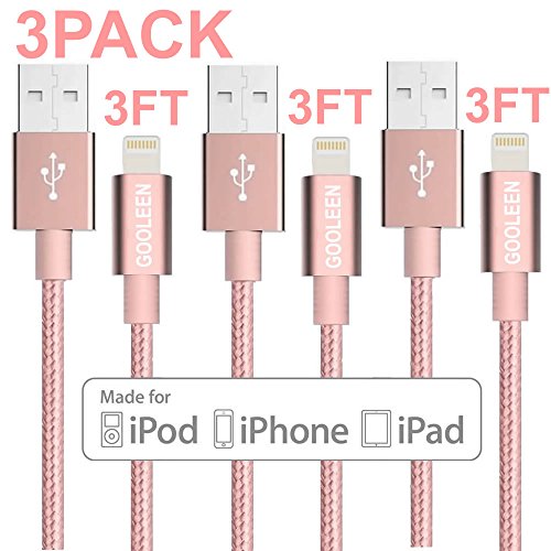 iPhone Charger, GOOLEEN 3pack 3FT Nylon Braided 8pin Lightning to USB Sync and Charging Cable Cord for iPhone SE 6s plus, 6s, 6 plus, 6, 5s, 5c, 5, iPad Pro, Air, iPad mini, iPod nano, touch - Gold