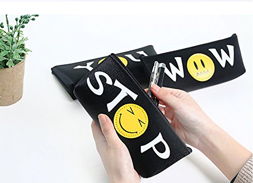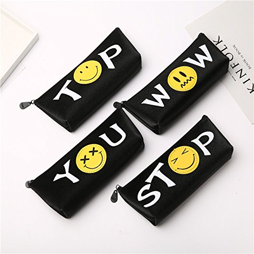 Pen Pencil Bag Pouch Emoji Pencil Case Storage Organizer Funny Canvas Stationery Coin Purse Travel Cosmetic Makeup Bag Multifunctional School Supplies with Zipper Smiley Face (YOU)