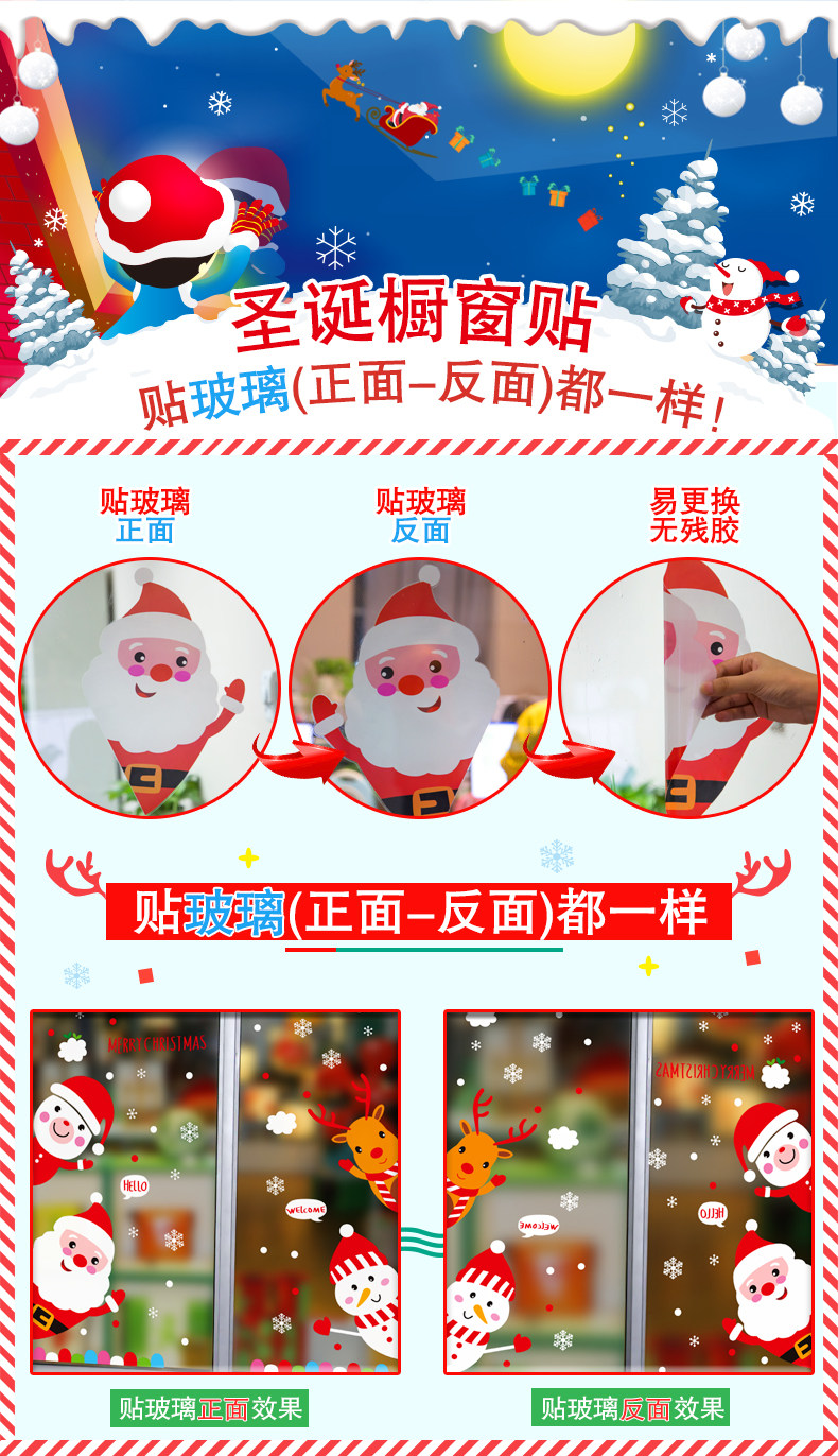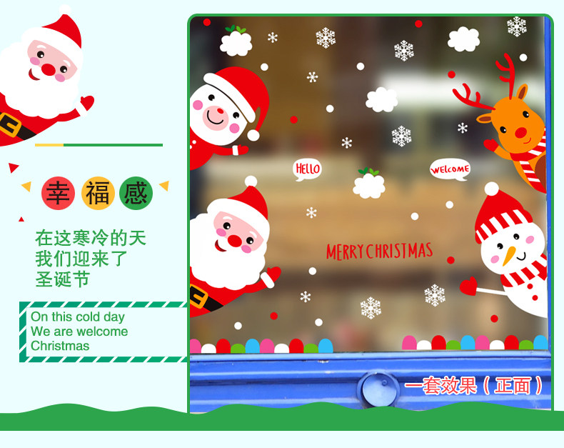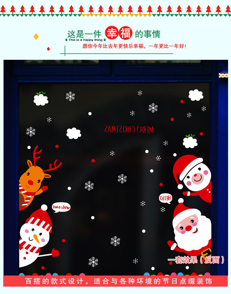 开业装饰布置店面节日活动玻璃橱窗贴画贴纸气氛卡通欢迎圣诞门贴
