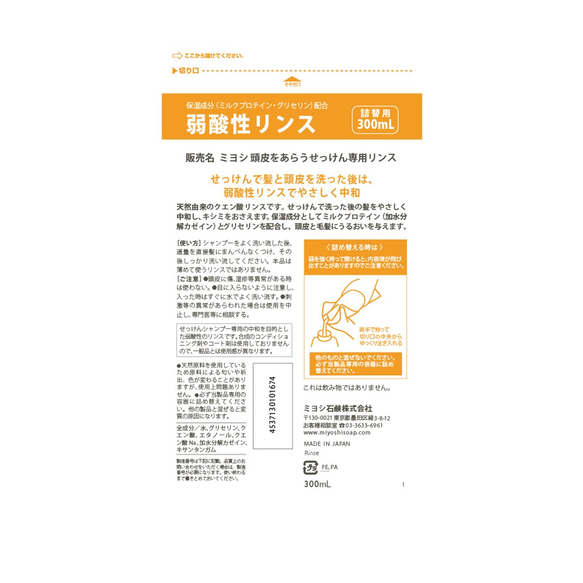 Miyoshi Soap | Rinse | Rinse for Scalp Care Shampoo Refill 300ml