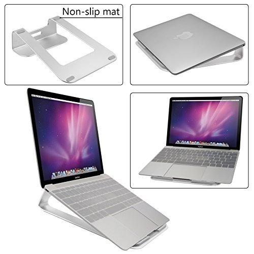 SKoloo Aluminum Stable Ventilated Laptop Stand Cooling Tablet Desktop Desk Display Holder Mount Cradle Dock Bracket for 11 ¨C 15 Inch Computer Notebook Apple Macbook Air, Pro, Chromebook, PC, Silver