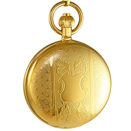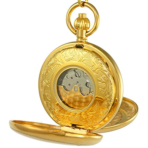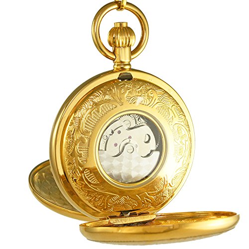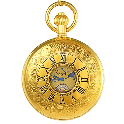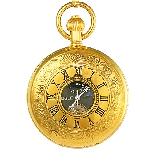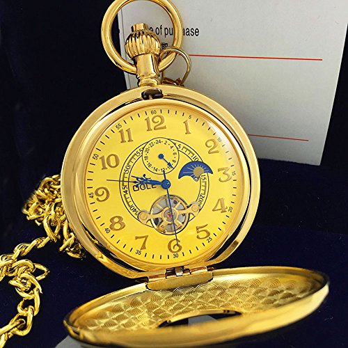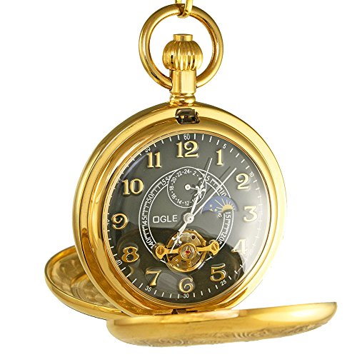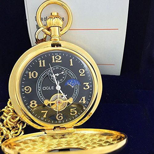 -. Title : OGLE Vintage Copper Double Cover Tourbillon Phases Moon Chain Fob Self Winding Automatic Mechanical Pocket Watch/Gold Dial