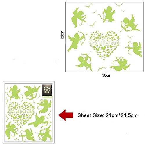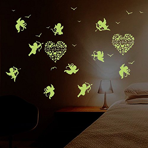 ufengke "Love At First Sight" Cupid Wall Decals Fluorescence Stickers Glow In The Dark, Children's Room Nursery Removable Wall Stickers Murals