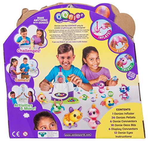 Studio : Oonies Publisher : Oonies Binding : Toy Product Description This set includes the Oonies Starter Pack and Mega Refill Pack. Place an Oonies pellet into the Inflator. Then it will magically grow to become an air-filled ball of fun! You can connect the Oonies for cool designs. Not a bubble, not a balloon... they're Oonies! No glue, no water, no mess. The Starter Pack comes with enough pellets to make 3 Oonies designs. The Mega Refill Pack contains 90 pellets and 12 connectors to create up to 16 Oonies designs. Challenge your friends with fun games and activities using Oonies! Ages 5 0