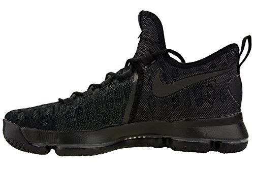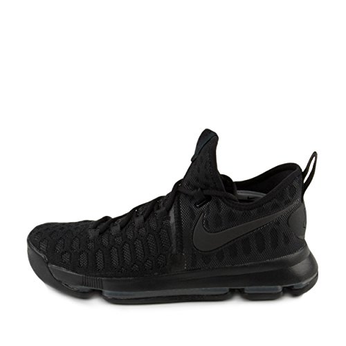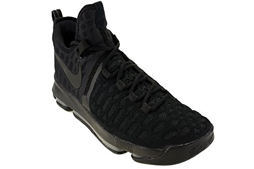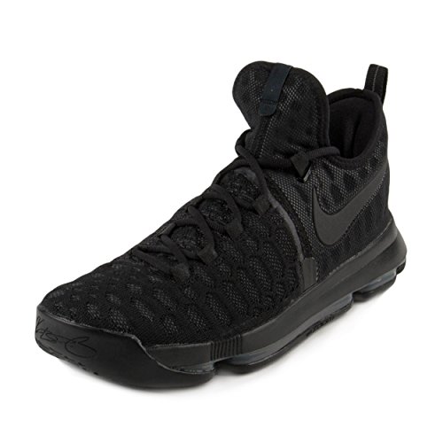-. Binding : Apparel -. Brand : -. Color : Black/Anthracite -. Department : mens -. Feature : Zoom Air cushioning enables natural motion while providing a more responsive feel / The sock-like Flyknit forefoot provides an incredible fit and feel with areas of breathability, stretch and support where you need them most. / Intersecting lace loops create a "cage" that supports and contains your foot during quick cuts and sP.R.Ints. / Mesh and foam around the heel add comfort / Multidirectional traction pattern for durability and multi-surface grip -. Label : -. Manufacturer : -. MPN : 843392-001 -. PackageQuantity : 1 -. PartNumber : 843392-001 -. ProductGroup : Shoes -. ProductTypeName : SHOES -. Publisher : -. Studio : -. Title : Mens Kevin Durant KD 9 "Triple Black" Basketball Shoes