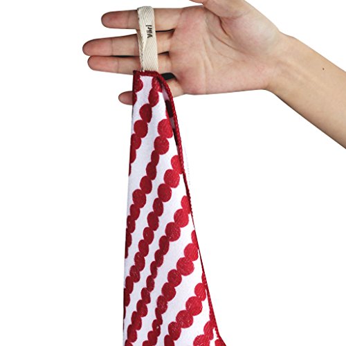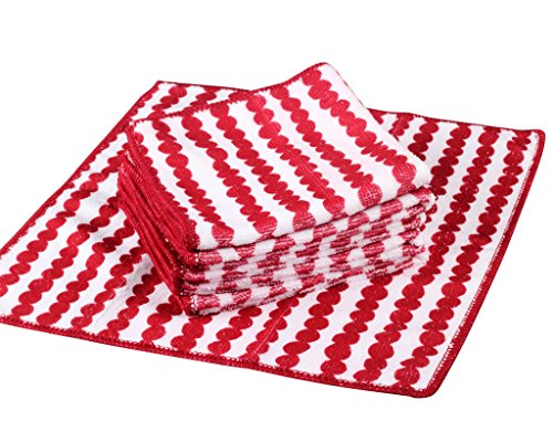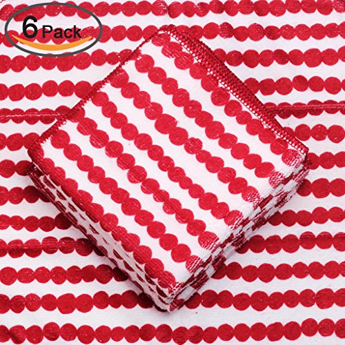 Kleanner Polka Dots Microfiber Kitchen Dish Cloth With Hanging Loop, Kitchen Home Cleaning Dish Rags Cloth, Soft and Absorbent, Size 12 x 12 Inch, Set of 6 Packs ( Red Color)