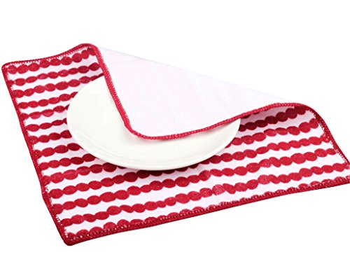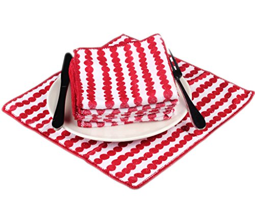 - Main Features: Polka Dots microfiber dish cloth. Great for Kitchen or Home Use. Cleaning Dishes, Coutertop, Bakeware, Pots and Pans, Table, Window, exc. The microfiber cloth is high water absortption, picks up a lot of liquid and leaves no lints. They quick dry to prohibit the growth of bacterial. More durable than cotton towel, rinse and reuse hundreds time.