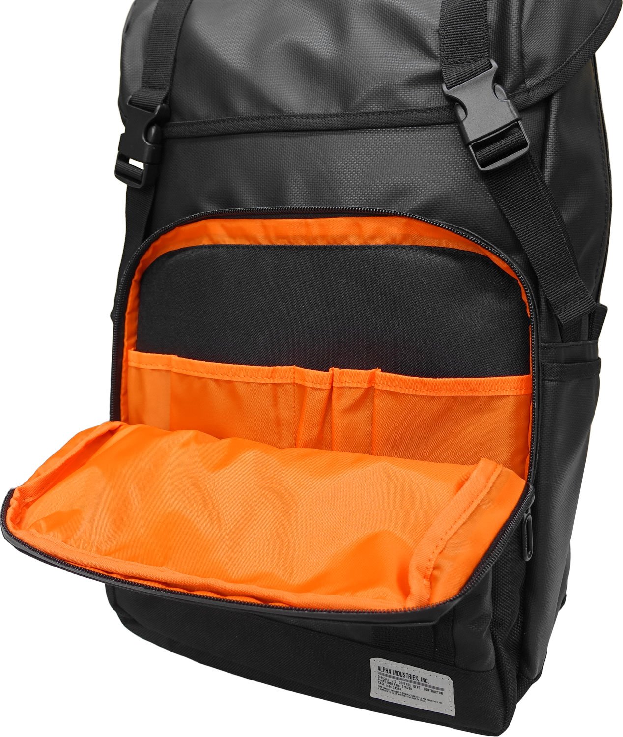It is a large capacity flap daypack with coated fabric.