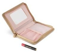 -. Feature : zippered case with a mirror and pockets / Rock N' Red mini nourishine lip gloss with gold jewel accent on top of lid. / Measures: 5 3/4" wide x 4" Tall